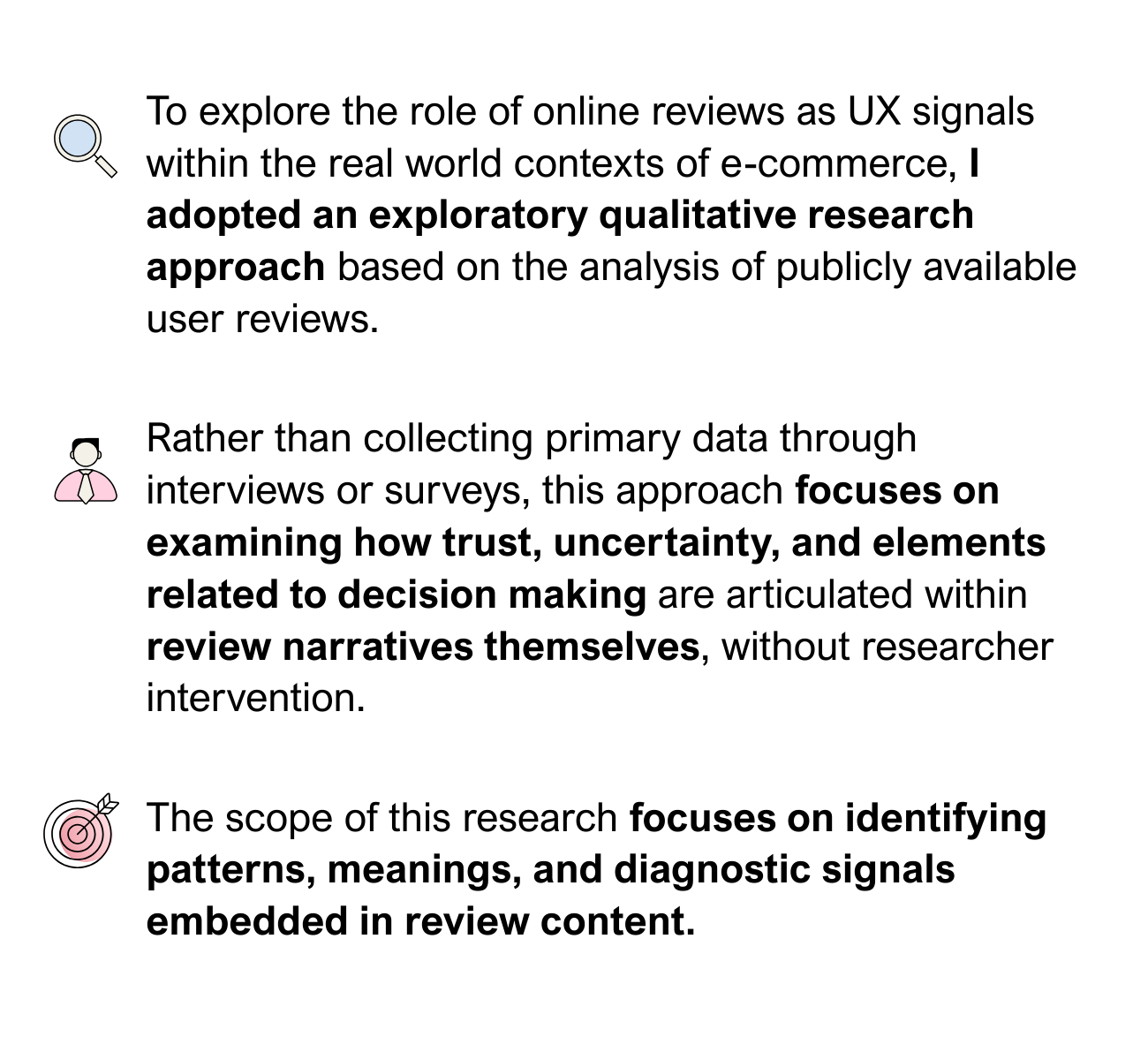 Before conducting the qualitative analysis, I reviewed existing academic and UX research on online reviews, trust, and decision making to ground the study in established knowledge.