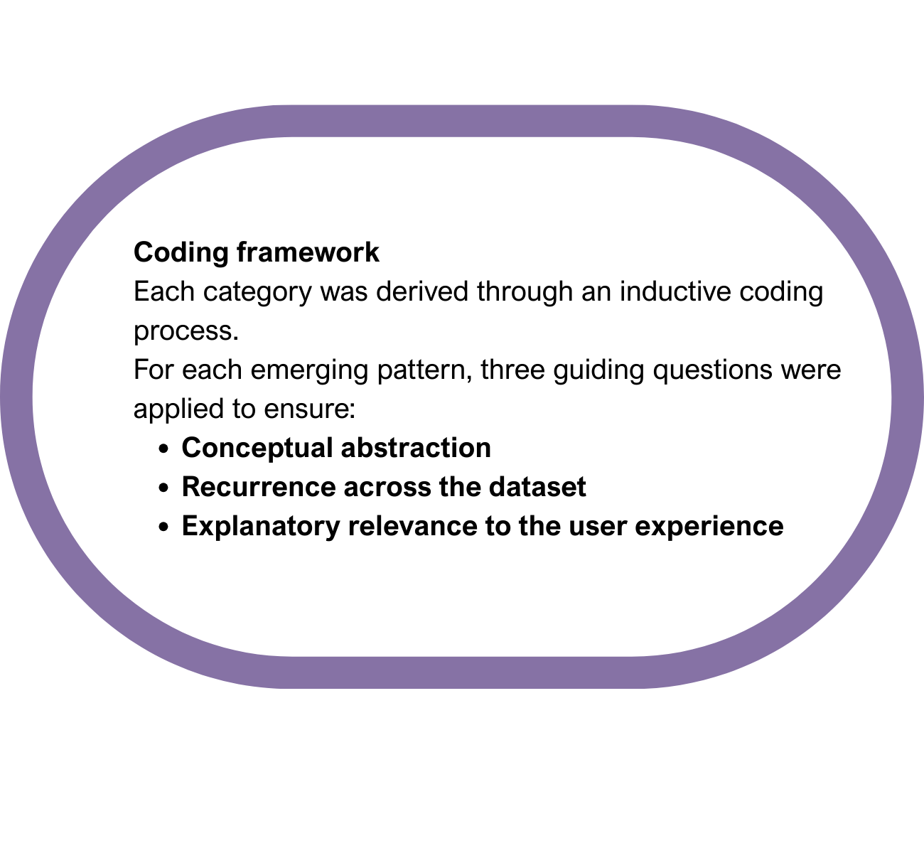 The coding process followed an inductive qualitative approach, inspired by Grounded Theory and Thematic Analysis, focusing on recurring experiential patterns and their explanatory relevance, rather than on predefined UX metrics